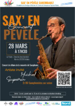 SAMEDI 28 MARS 2026 - 17H30 L’Académie de musique d’Orchies et l’École de musique en Pays de Pévèle organisent une journée entièrement consacrée au saxophone, mêlant pratique collective, transmission et partage musical. Cette rencontre s’adresse aux élèves et musiciens à partir de la 2ᵉ année de pratique, désireux de jouer en ensemble, d’écouter, d’échanger et de…