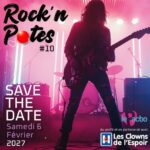 SAMEDI 6 FÉVRIER 2027 Le Rock’n Potes Festival fête ses 10 ans ! Et cette fois encore, l’événement obéira aux mêmes principes immuables : Du hard rock, du metal, du prog au bénéfice intégral de l’association des Clowns de l’Espoir employant 80 comédiens clowns et marchands de sable qui apportent tout le long de l’année joie, sourires…